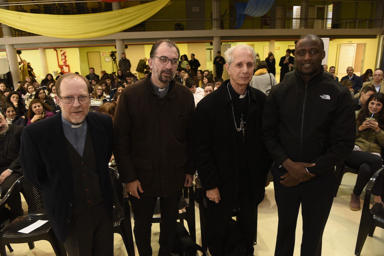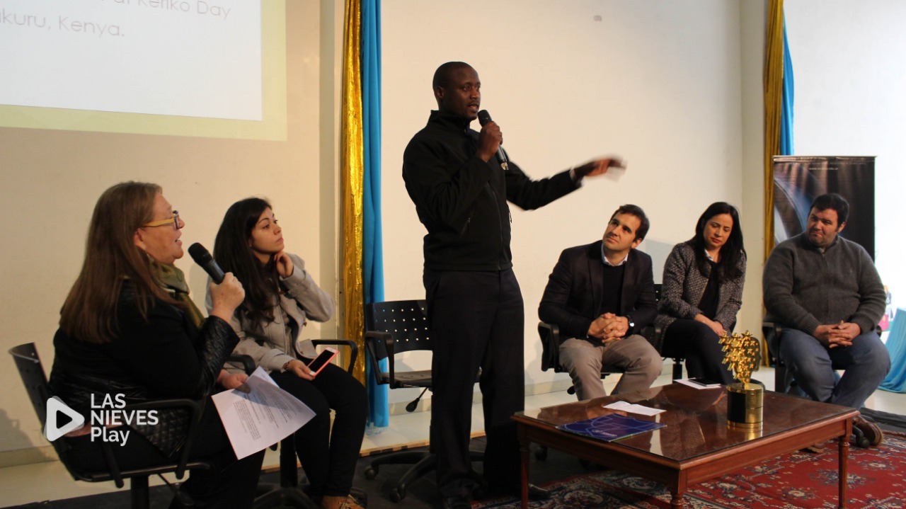 Acompañaron en el diálogo con Peter Tabichi, Agustín Porres (Director Regional de la Fundación Varkey que otorga la premiación), Luciana Alonso (Directora de proyectos Eutopía y Profuturo, alianza entre la Vee-Fundación Telefónica de Argentina-Movistar-La Caixa), Silvana Tejón (moderadora del diálogo, Directora Pedagógica de la Asociación de Escuelas Bilingües-ESSARP), y el padre Juan Isasmendi, párroco del Colegio Madre del Pueblo de la Villa 1-11-14.