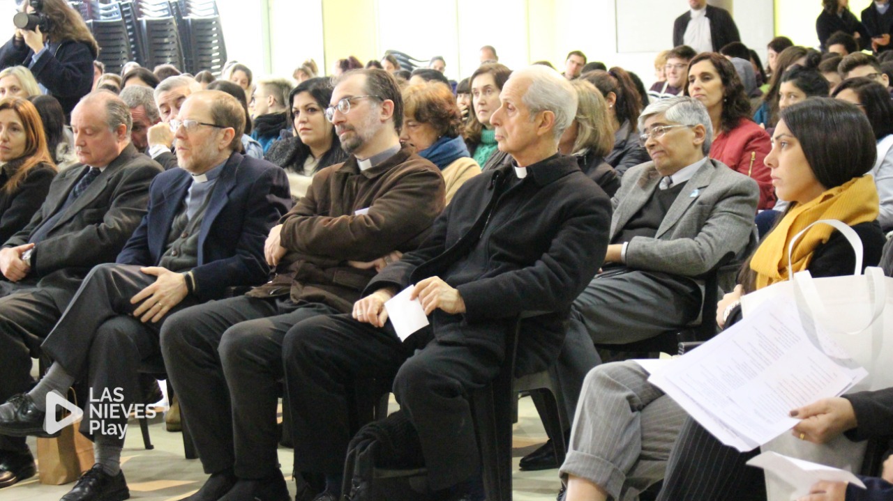 La bienvenida estuvo a cargo del padre Pablo Corbillón, delegado episcopal para la Vicaría Pastoral de Educación del Arzobispado de Buenos Aires: “Doy inicio a este encuentro con el hermano Peter, maestro de ciencias, que nos da un testimonio constante de lo que es un proyecto educativo, de lo que es un desafío y buscar una mejor respuesta”. Luego invitó a rezar la Oración de San Francisco, también conocida como Oración Simple, “Haz de mí un instrumento de tu paz”. |